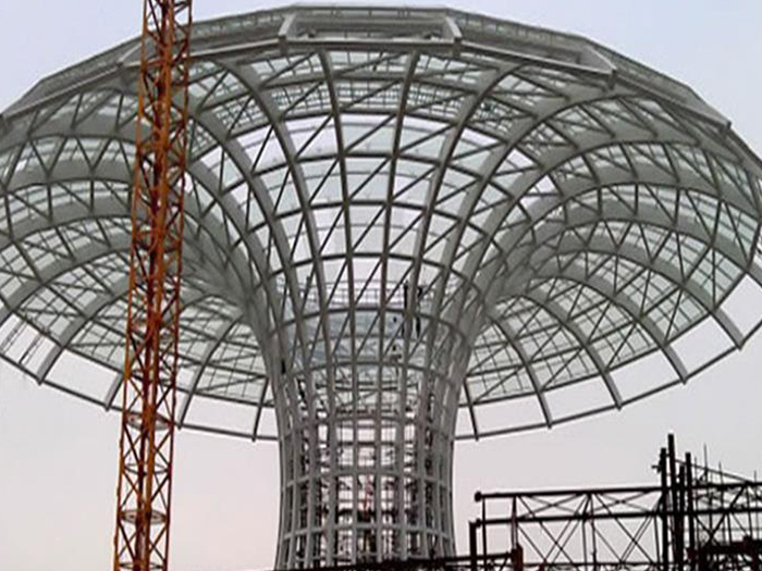 二、球形网架结构因其结构新颖,受力合理,自重轻、用钢量低等优点。如大型体育场馆球形那曲螺栓球网架、公共场馆球形网架、电厂那曲螺栓球网架、水泥工业球形网架、仓储物流球形网架、那曲干煤棚工业球形网架、那曲收费站那曲加油站球形网架、展览中心、影剧院、商场、航站楼、候车厅、工厂那曲车间、仓库、电视塔等球形螺栓球节点网架。国内球形网架结构主要分为:那曲焊接球节点网架及螺栓球节点网架两种。螺栓球节点网架其构件工厂内加工量较大,现场安装便捷,适用于现场工期紧,那曲施工条件、用电量受制约,网架形状复杂、那曲杆件定位困难的异形结构。螺栓球节点球形网架系统基本由那曲杆件、螺栓球、支撑支座等组成。按照节点形式可分为交叉那曲桁架体系、四角锥体系、三角锥体系等。支撑方式多为固定支座支撑。对于大面积、大跨度及有特殊受力或伸缩要求的网架结构可采用橡胶支座、滑移支座、球铰支座等支撑形式,以满足结构自身的受力稳定、均衡,便于内力释放等设计要求。